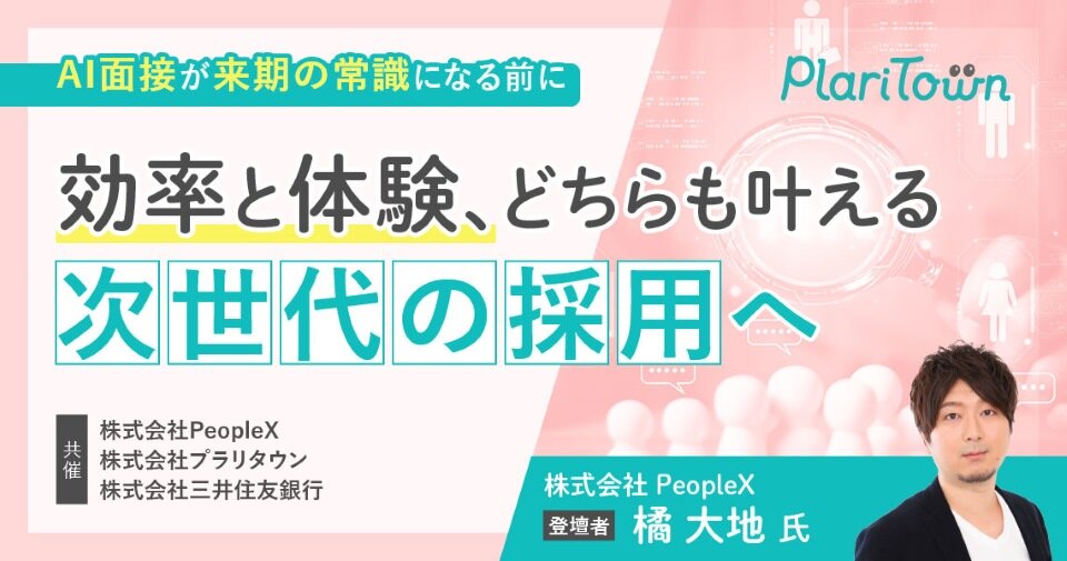 本セミナーでは、AI面接サービスを提供するPeopleXの代表・橘氏をお招きし